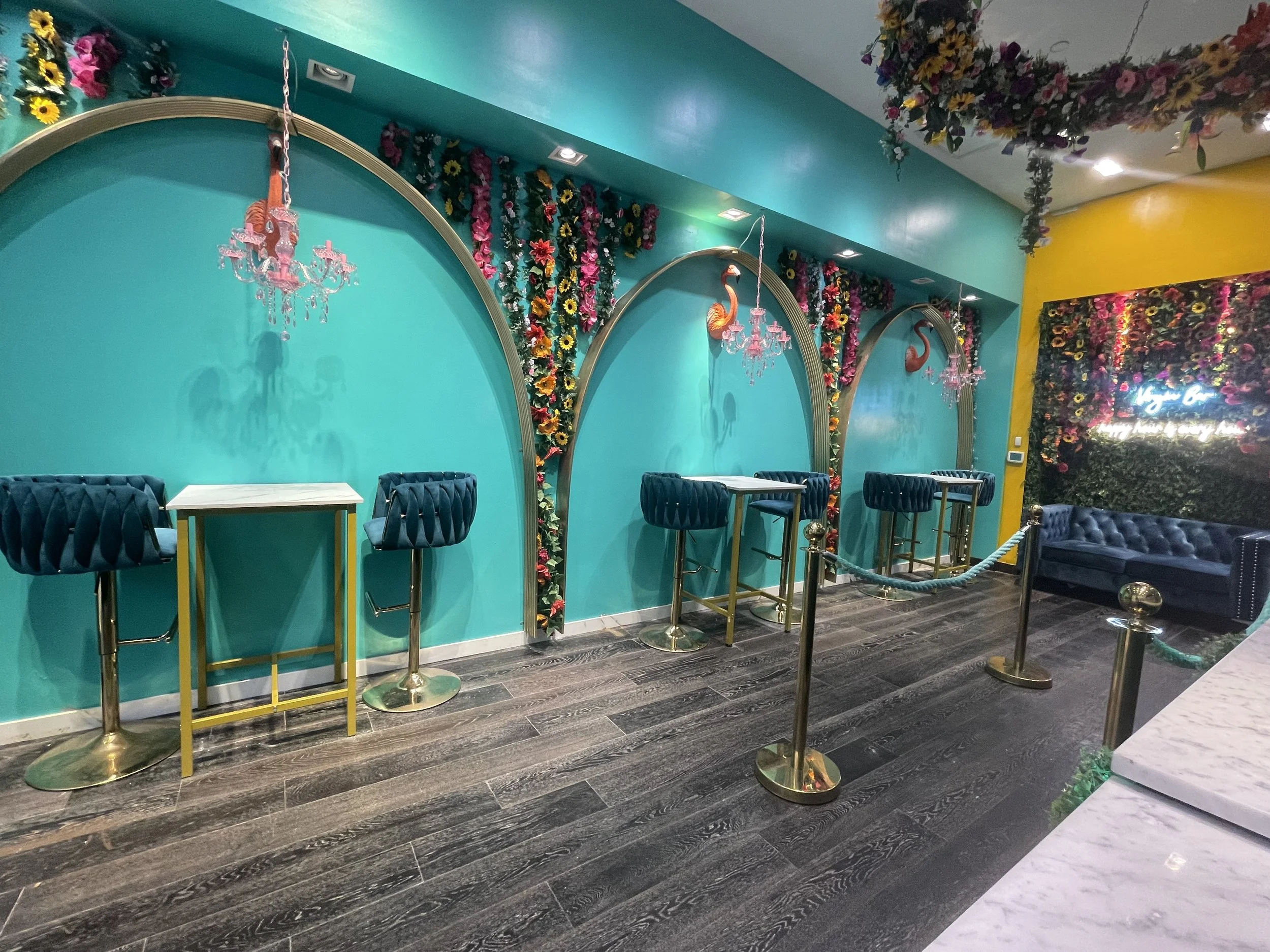 Our venue comfortably seats 10 people. We have additional lounge areas if your party exceeds 10 guests.