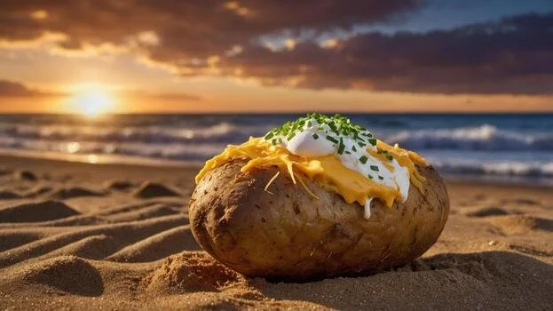 This paradise-inspired bowl comes loaded with home-style cuts of tender potatoes, blended with flavorful seasonings, bacon, and cream cheese. We top it with chopped scallions, fresh chives, and a mountain of melted cheese for the ultimate cozy-meets-tropical comfort. Warm, hearty, and island-approved —this is baked potato bliss in potato paradise.