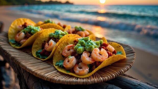 Our Shrimp & Surf Tropical Taco brings all the coastal flavor you crave — a wave of tender, seasoned shrimp on a warm, soft flour tortilla, built for surf-worthy flavor with a splash of tropical brightness.