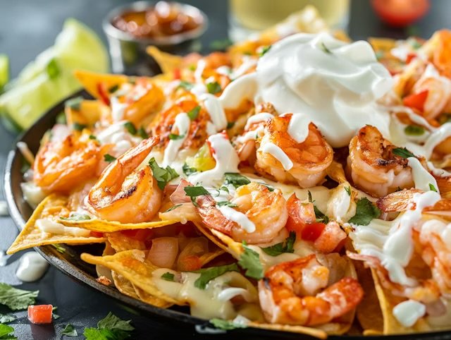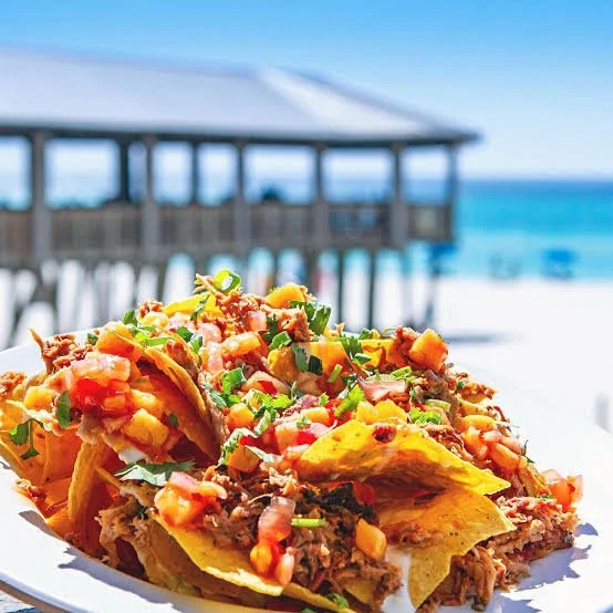 Our Shrimp & Surf Tropical Nachos — an island masterpiece with crispy golden chips stacked and surfed by perfectly seasoned juicy shrimp. Topped with our signature mango pico de gallo — a vibrant blend of golden mangos, tomatoes, and onions Then layered with warm golden nacho cheese, fresh lettuce, jalapeños, a swirl of sour cream, and finished with a bright squeeze of fresh lime an extra wave of flavor. One bite and you’re riding a full wave of tropical flavor.